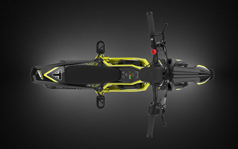 Modular “2-in-1” design: switch between Trials (standing) and Explore (seated) modes with the removable seat kit.